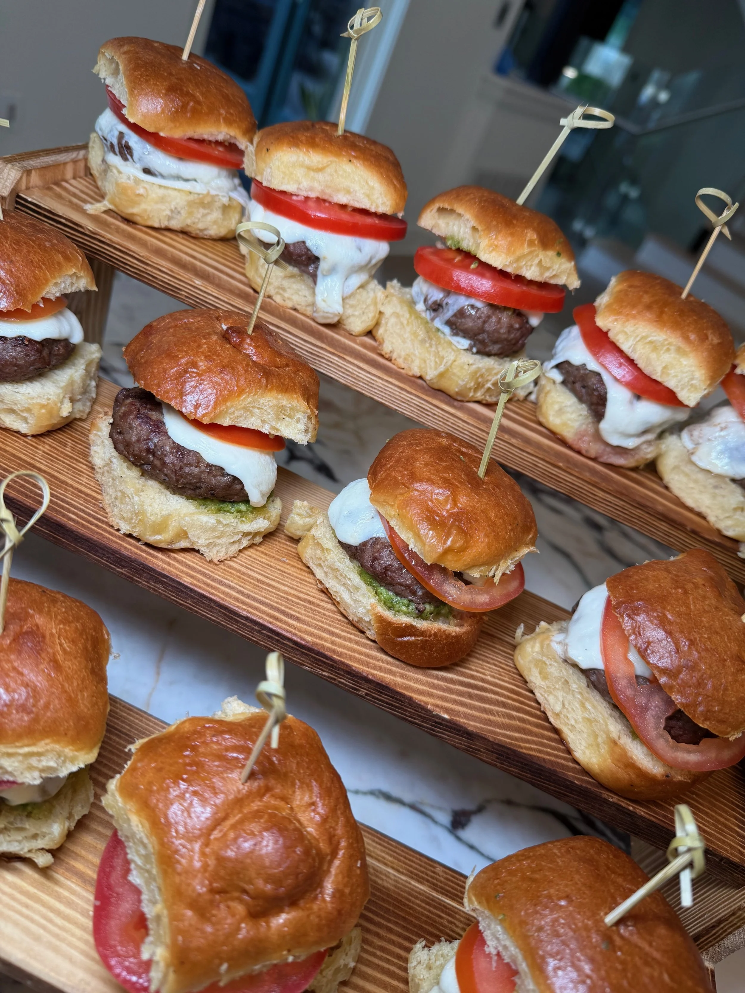 The first was his season premiere party for the 8th season of Jersey Shore family vacation. I made his favorite snacks of 1. chicken and waffles, 2. burger sliders, 3. pizza and 4. pasta.